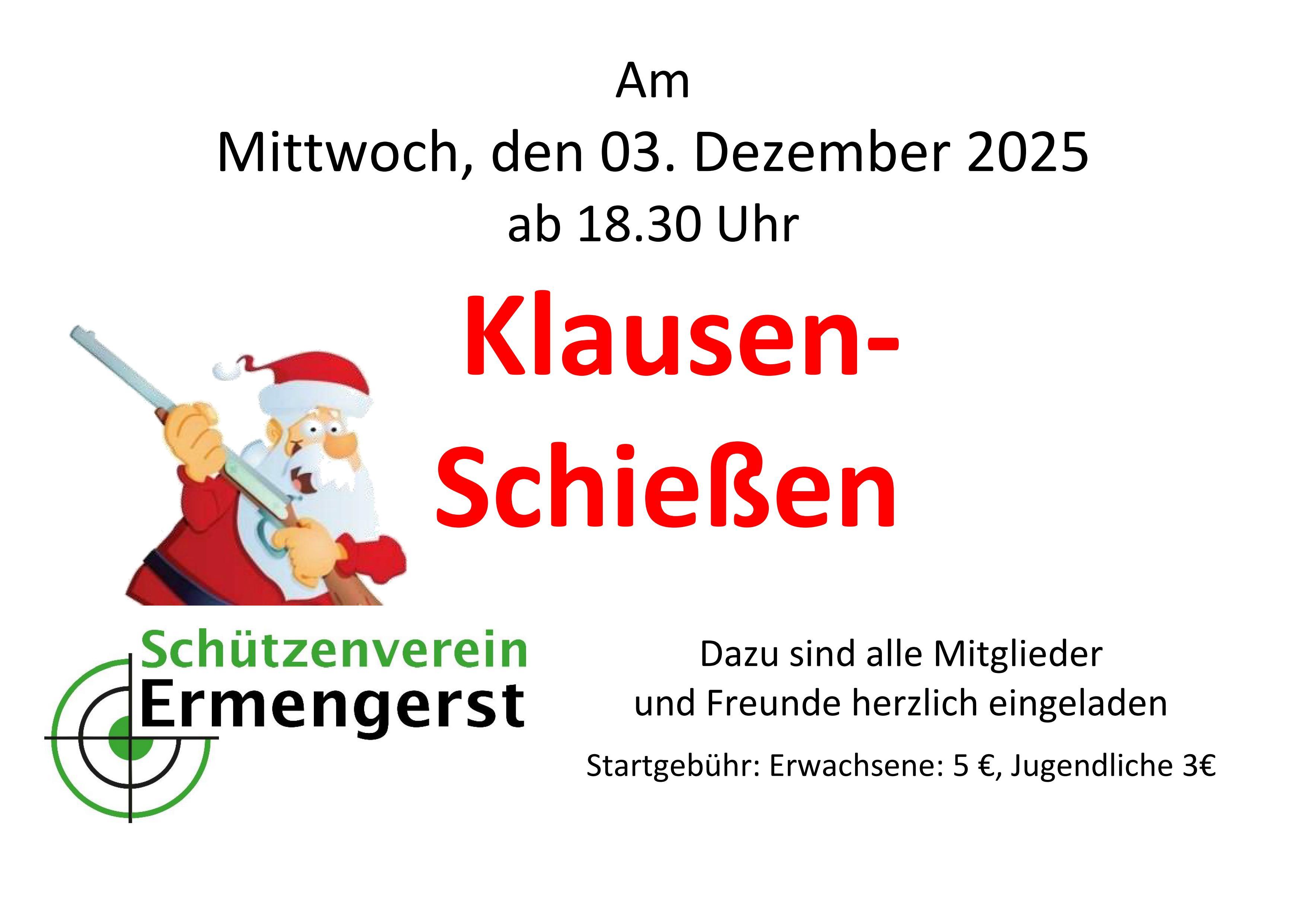 Schießzeiten ab 15. Oktober 25 jeden Mittwoch ab 18.30 Uhr. Neue Schützen sind herzlich willkommen, weitere Info bei der Vorstandschaft